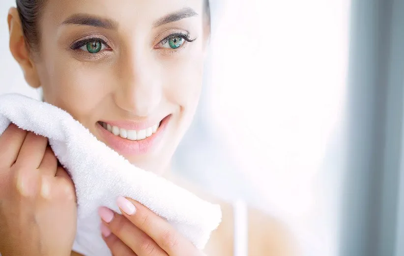 زمانی که پوستتان را به طور کامل با پد پنبهای پاک کردید، یک حوله یا پارچهی تمیز و نرم بردارید. آن را با آب گرم خیس کنید و باقی ماندهی مواد آرایشی را که با پاککنندهی آرایش برطرف نشده، از صورتتان پاک کنید.